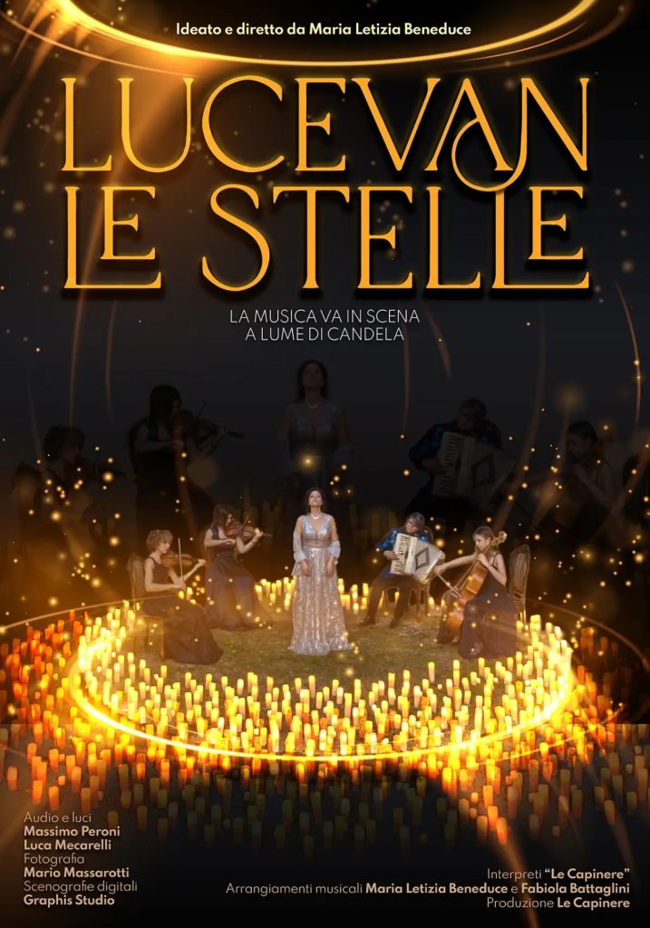 Ad aprire la kermesse, mercoledì 23 luglio alle ore 21:00, un appuntamento emozionante e suggestivo: “Lucevan le stelle – La musica va in scena a lume di candela”, una serata dalle mille emozioni con il trio “Le Capinere”, ideato e diretto da Maria Letizia Beneduce, più volte violinista nell’Orchestra del Festival di Sanremo, che accompagnerà il pubblico tra arrangiamenti originali ed innovativi in un viaggio tra le musiche di Verdi, Rossini, Bizet, Nino Rota, Piovani ed Ennio Morricone.