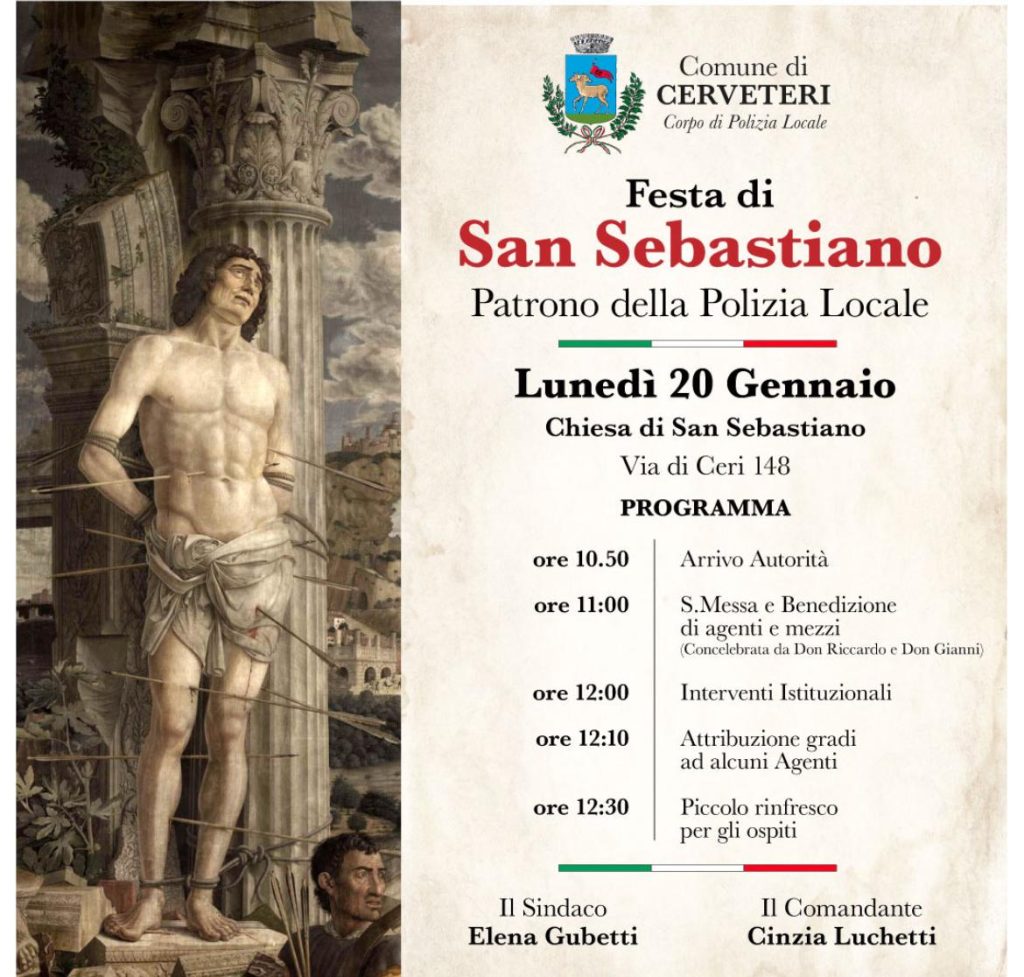 Il 20 gennaio, a Cerveteri si tornerà a celebrare, dopo molti anni, San Sebastiano, il Santo Patrono della Polizia Locale. Sarà un’occasione per riprendere una tradizione e riscoprire le bellezze del territorio, come la Chiesa di San Sebastiano, luogo in cui si terrà la celebrazione religiosa e civile.