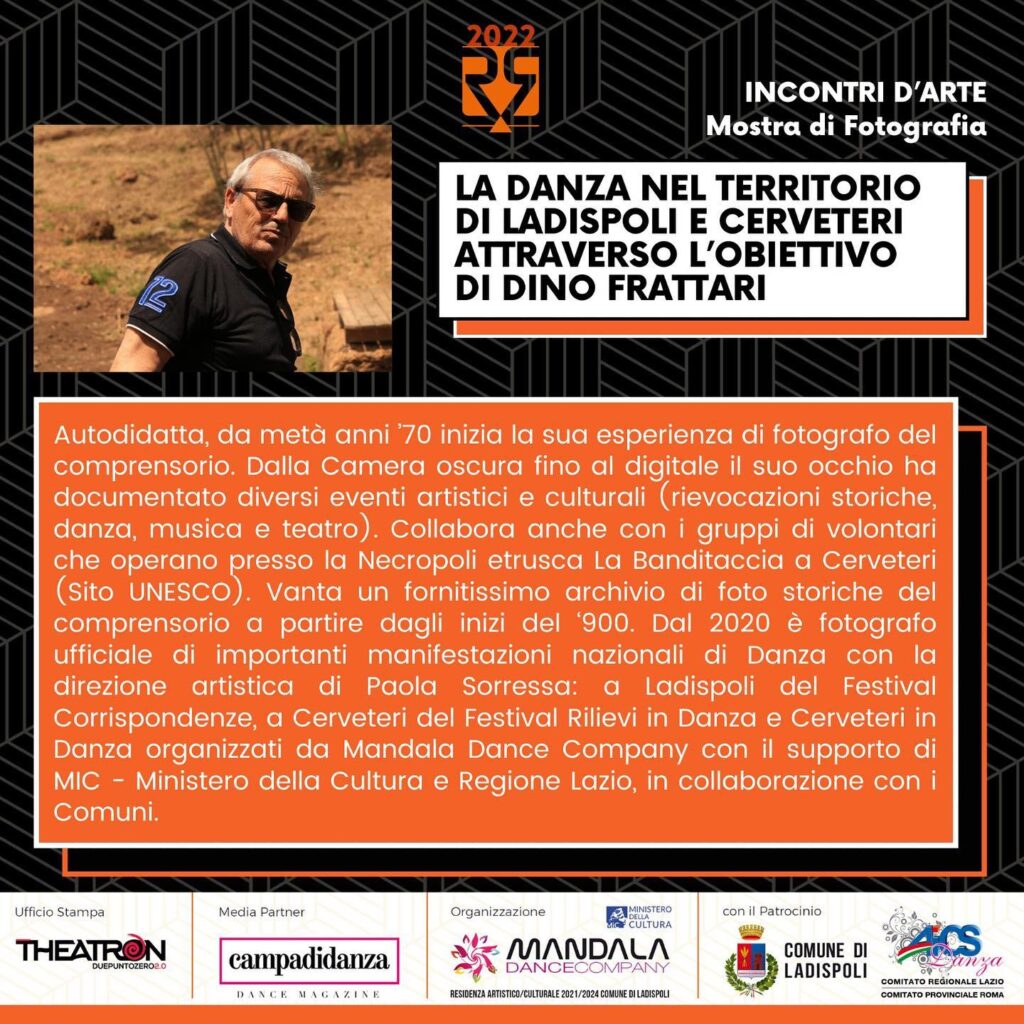 Dal 29 ottobre al 1° novembre si terrà anche la mostra fotografica dal titolo “La Danza nel territorio di Ladispoli e Cerveteri attraverso l’obbiettivo di Dino Frattari” curata dallo stesso Frattari.