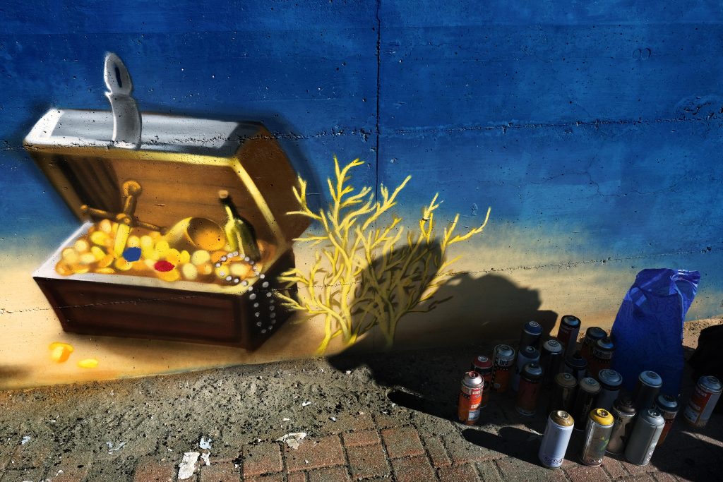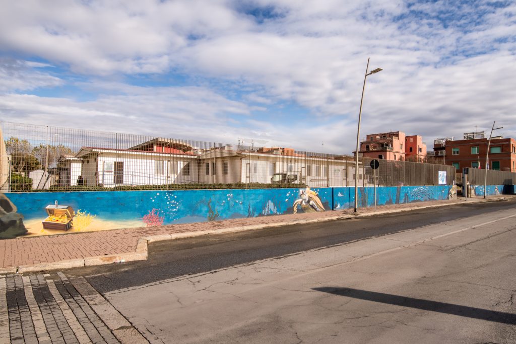L’opera, un capolavoro di street art, prende vita lungo tutto il muro che costeggia la Fondazione Roma Litorale, ente che da oltre 40 anni si occupa di fragilità, disabilità del neurosviluppo e malattie rare attraverso specializzazioni cliniche e impegno nella ricerca. Si trova tra via del Sommergibile e il Lungomare Duca degli Abruzzi. Ed è stata realizzata in collaborazione con il Gruppo ‘Subword’ (associazione Le Tartarughe).