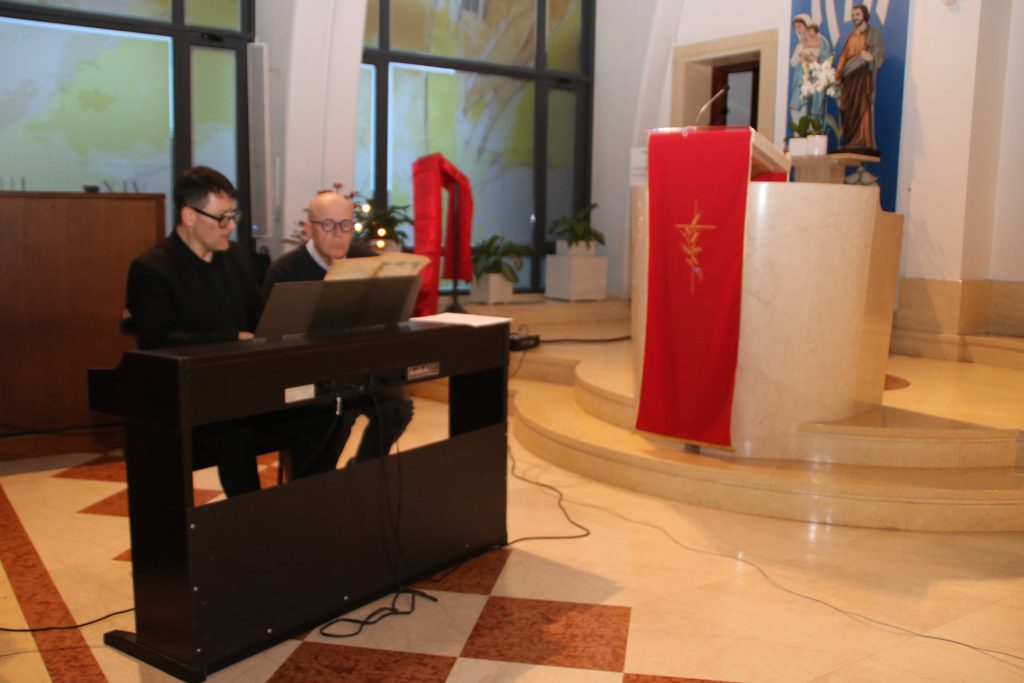 Innanzitutto, le bravissime soprano Orietta Manente e il contralto Annarita Cerrone. Accompagnate al pianoforte dal Maestro Luigi Mastracci. Le voci che hanno sottolineato i vari passaggi sono state del regista e attore, Agostino De Angelis, e di Gianfranco Brannetti.