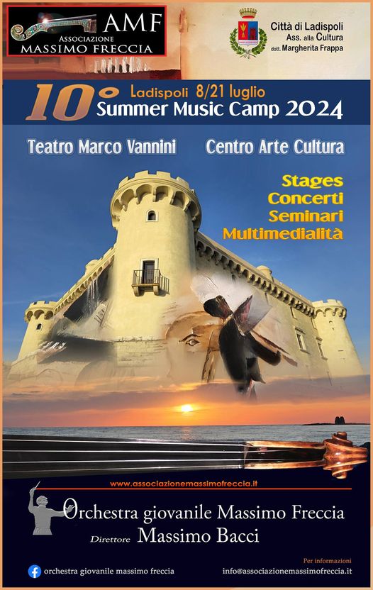 Torna, a Ladispoli, il tanto atteso Summer Music Camp 2024 dell’Associazione Massimo Freccia insieme all’Orchestra giovanile Massimo Freccia giunto ormai alla sua decima edizione. Dall’ 8 al 21 luglio, il Teatro Vannini e il Centro di Arte e Cultura di Ladispoli saranno i luoghi di riferimento per questo camp musicale all’insegna del divertimento, della cultura e della creatività.