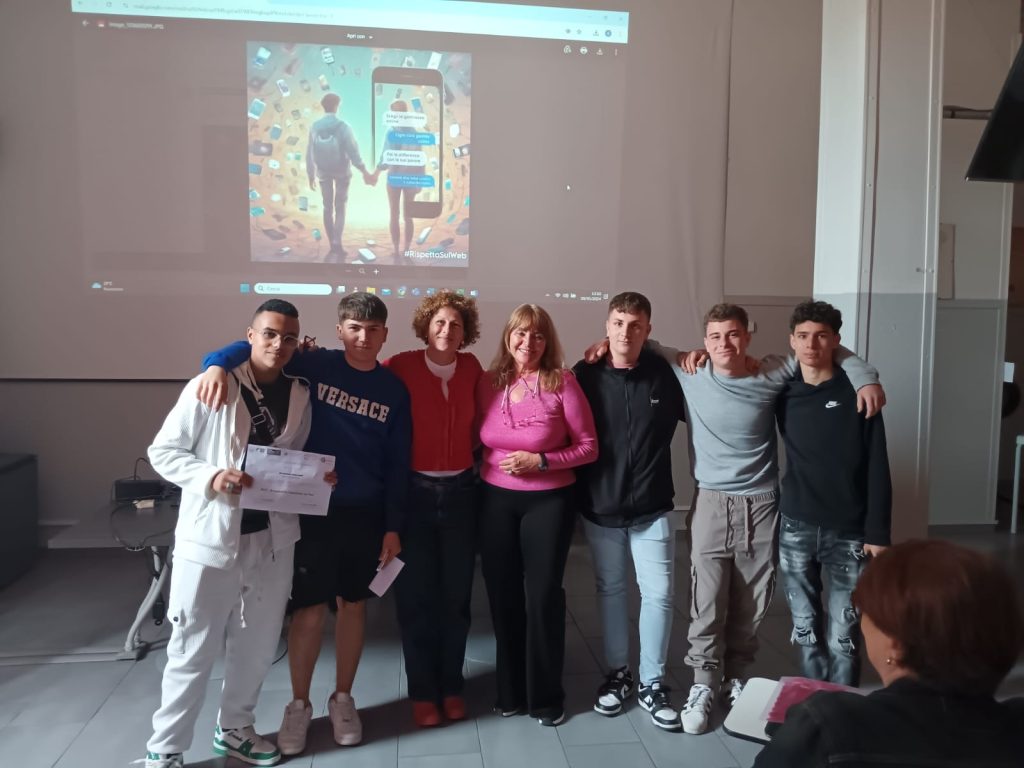 Il percorso si è concluso con un contest che ha visto premiati gli allievi dell’Istituto Superiore “Giuseppe Di Vittorio” per la realizzazione di un cortometraggio e di un lavoro in Powerpoint. “Il cortometraggio “Lotta contro il bullismo” – ha spiegato Aian Anton Nicolae, uno dei vincitori, insieme a Mohammed Es Sahhal, Giulia Di Blasi e Valerio Maggiolini – è stato realizzato con l’obiettivo di sensibilizzare gli studenti e la comunità sul problema del bullismo nelle scuole. Il progetto, che ha coinvolto studenti e insegnanti, si è proposto di mostrare le dinamiche di questo fenomeno, le sue conseguenze e l’importanza dell’intervento e del sostegno. E’ stato importantissimo, per noi, passare “dietro le quinte” e capire quali sono i meccanismi che innescano la spirale della prevaricazione e della violenza, perché conoscerli significa imparare a combatterli e, soprattutto, poter aiutare chi si trova in queste situazioni. Con il video realizzato – ha aggiunto – abbiamo voluto evidenziare che, purtroppo, tutto può nascere dalla quotidianità di una lezione in classe, fatta di interrogazioni, verifiche e spiegazioni. Si comincia sempre con atti che molti nostri coetanei vogliono far passare come “scherzi”, forse solo un po’ pesanti. Invece non è così e “normalizzare” o “minimizzare” l’aggressività è il primo errore per cadere nel suo terribile abisso. Ringraziamo di cuore la Prof.ssa Francesca Acocella, nostra Referente per le attività di contrasto al bullismo, per averci accompagnato, ogni giorno, nel cammino che ci ha consentito di diventare più attenti e responsabili.
