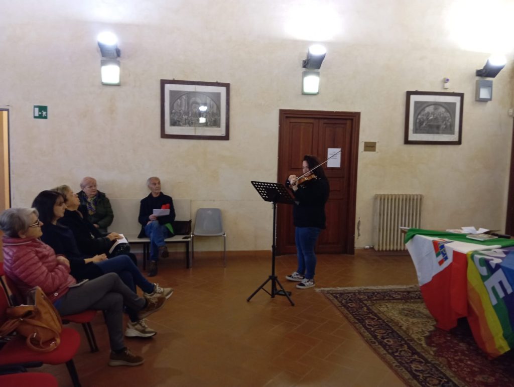 Un esortazione fatta ai ragazzi è quella di essere curiosi, di andare a cercare più informazioni su questo argomento ancora oggetto di studio da parte degli storici e di cui emergono zone d’ombra non conosciute, certamente non sufficientemente trattato nelle scuole in tutta la sua complessità. Questa giornata intensa si è conclusa così come era iniziata, le note del violino dedicate alle donne della Shoah, in un simbolico abbraccio come può essere solo la memoria di una società civile che insegna ai suoi giovani l’importanza della libertà e ciò che non deve accadere mai più.