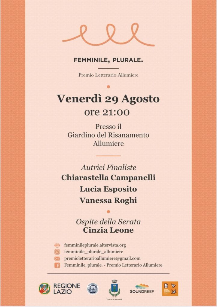 Questa sera, ore 21.00, ad Allumiere presso l’Anfiteatro del Parco del Risanamento, si svolgerà la premiazione di “Femminile, Plurale” – Edizione 2025.