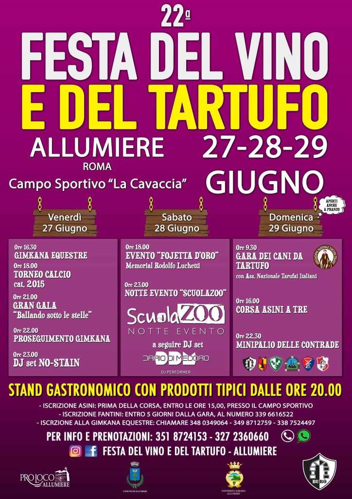 Da venerdì 27 a domenica 29 giugno, il suggestivo campo sportivo “La Cavaccia” di Allumiere ospiterà la 22ª Festa del Vino e del Tartufo, un appuntamento imperdibile per gli amanti della buona tavola, delle tradizioni locali e delle attività all’aria aperta.