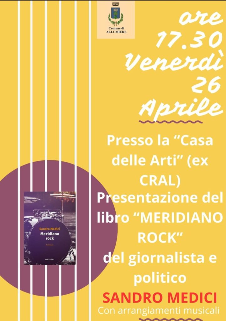 Allumiere, venerdì 26 aprile presentazione del libro “Meridiano Rock” –