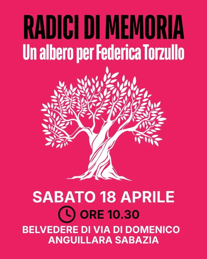 Sabato 18 aprile, alle ore 10.30, la comunità di Anguillara Sabazia si riunirà presso il Belvedere di via di Domenico per un momento di profonda riflessione dedicato a Federica Torzullo.
