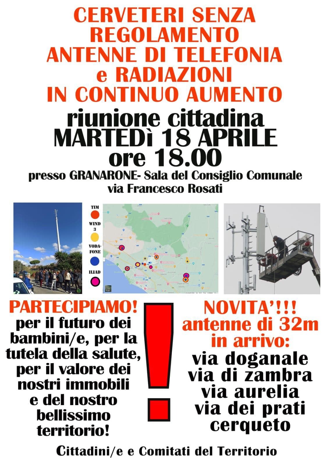 Un incontro per discutere della proliferazione di antenne di telefonia nel territorio di Cerveteri si terrà martedì 18 aprile alle ore 18.