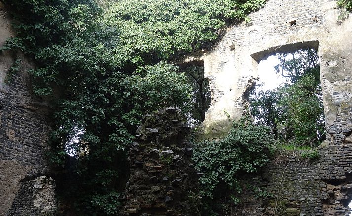 Ora l’antico borgo di Galeria Antica (accedendo da un arco) e come lo videro i viaggiatori stranieri del Percorso Italico di fine Ottocento, primi Novecento: un intrigo fatto di un mix di cespugli, rovi, alte erbe che possono nascondere pericolose profonde buche, insieme a rovine (pericolose e crollanti anche loro) di varie epoche che vanno dall’antico romano (quelle antecedenti che pur ci sono, in abbondanza, ma che vanno cercate con il “lanternino” dagli archeologi assolutamente più bravi, provveduti e più indagatori in assoluto), al medioevale fino al secolo dell’abbandono “dominate” da pochi resti di campanili del periodo pontificio.