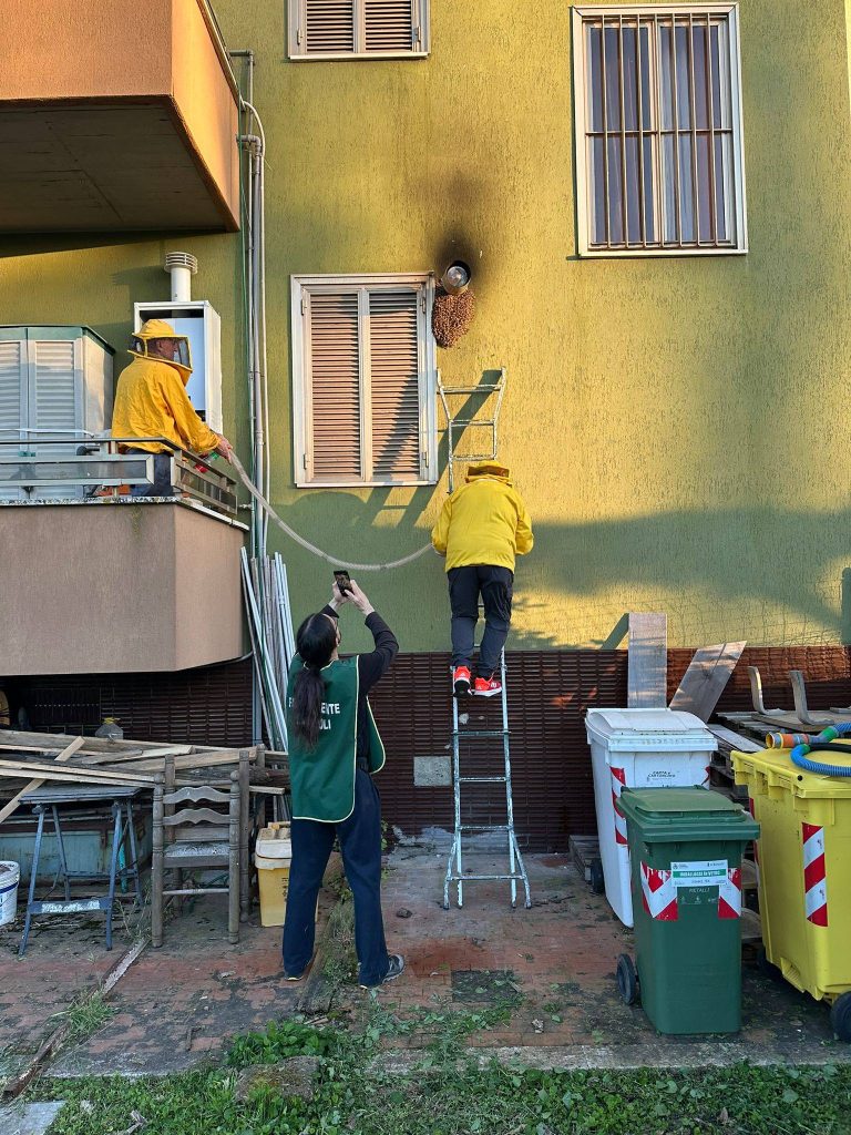Un’operazione delicata, svolta con competenza e coraggio, che ha visto i volontari agire con attrezzature specifiche e in totale sicurezza. Indossando le tradizionali tute protettive da apicoltore, il team ha lavorato con precisione per salvare le api senza arrecare loro danno, dimostrando ancora una volta quanto sia fondamentale il ruolo del volontariato ambientale.