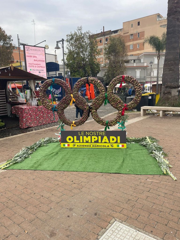 Il percorso espositivo si apre con un omaggio allo sport mondiale grazie all’azienda agricola da Massimiliano di Ladispoli che ha realizzato i cinque cerchi dei giochi Olimpici unendo idealmente la competizione atletica alla fatica del lavoro nei campi. Il legame profondo con il territorio prosegue con l’opera dell’azienda agricola De Angelis che ha voluto celebrare il cigno Giorgio simbolo indiscusso della città da qualche anno. La scultura ritrae il celebre pennuto che popola le nostre rive sorvegliando il mare e giocando idealmente con i bambini sulla spiaggia locale.