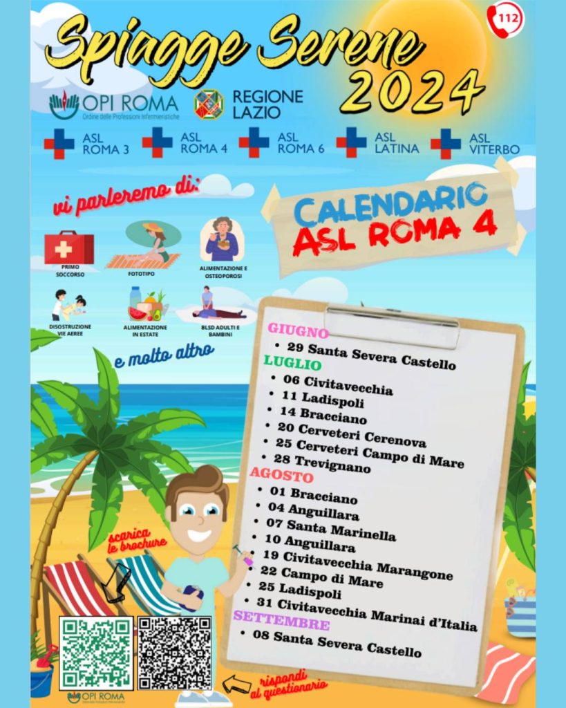 A partire da sabato 29 giugno sulle spiagge del litorale e preso le sponde dei laghi del territorio della Asl Roma 4 tornano le equipe della salute, composte da personale del Dipartimento delle Professioni Sanitarie aziendale, grazie al progetto “Spiagge Serene”.