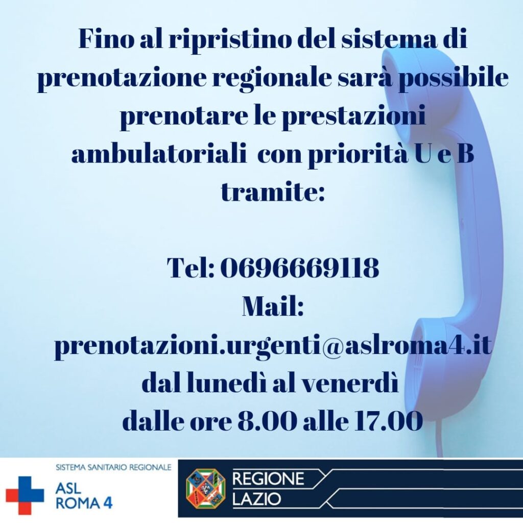 Asl Roma 4, fino al ripristino del sistema comunicati i contatti per prenotazioni ambulatoriali con priorità U e B –