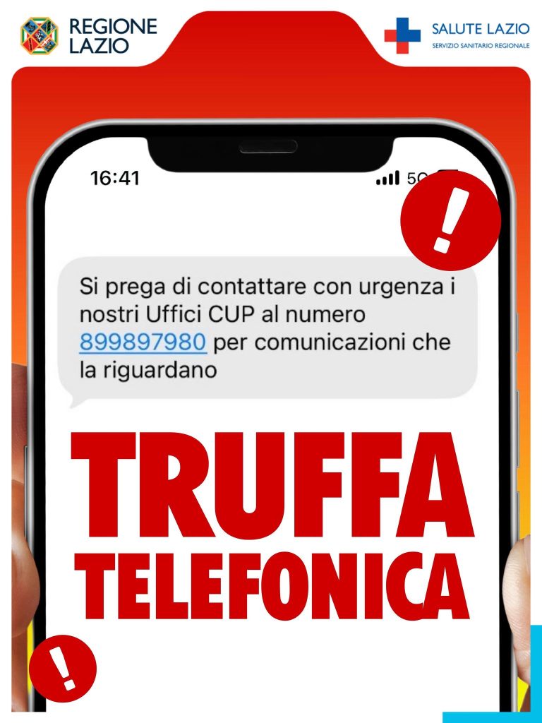 Per la vostra sicurezza e per evitare di cadere nella truffa, verificate sempre la provenienza delle chiamate. Le comunicazioni ufficiali da parte della Regione Lazio e delle Aziende Sanitarie Locali (ASL) arrivano SOLO tramite:
