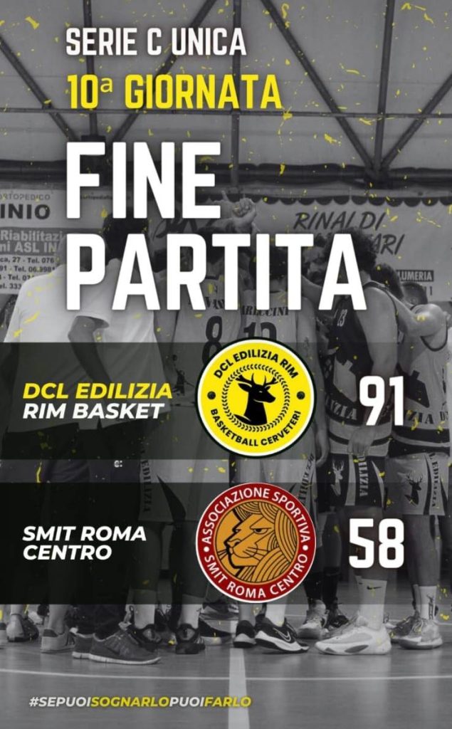 Con il punteggio di 91 a 58 la DCL Edilizia RIM Basket Cerveteri ha battuto la Smit Roma Centro.