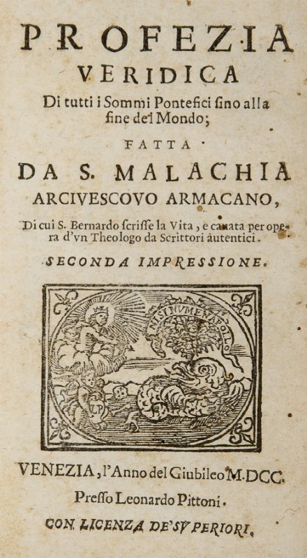 Ancora più cialtronesche sono le profezie del santo Malachia. O meglio, quelle attribuite al san Malachia. Perché la tesi consolidata presso gli storici è che il manoscritto sia un falso storico. Redatto nella seconda metà del XVI secolo.