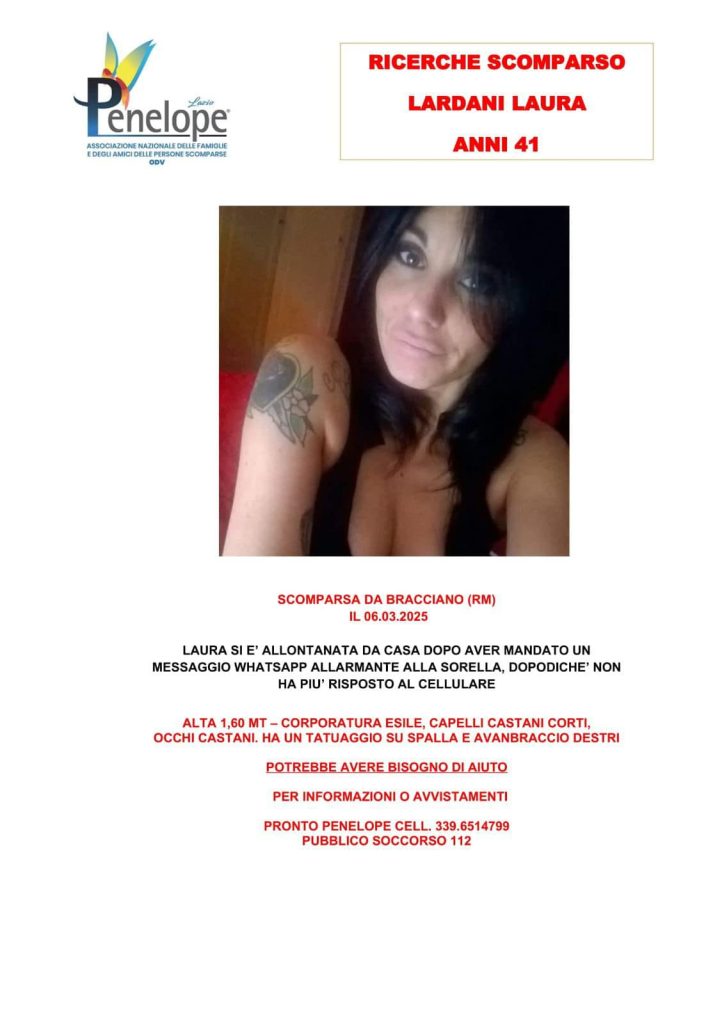 Dal 6 marzo 2025 a Bracciano si sono perse le tracce di Laura Lardani, di anni 41.