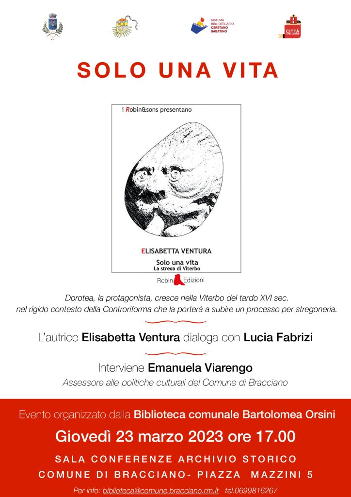 Giovedì 23 marzo 2023 nuova presentazione del libro “Solo una vita – La strega di Viterbo”, di Elisabetta Ventura.