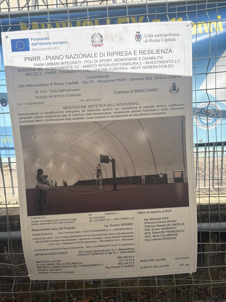 Questa mattina, con grande soddisfazione, abbiamo inaugurato ufficialmente l’apertura del cantiere per la riqualificazione del Palazzetto Starnoni in via delle Palme, un intervento atteso, concreto e strategico per il futuro dello sport a Bracciano.