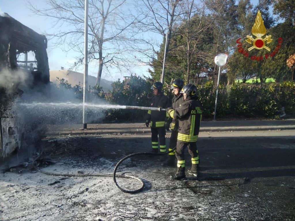 Bracciano, incendio ad un pullman sul posto i Vigili del Fuoco – Alle ore 15,30 circa di oggi, i Vigili del Fuoco di Bracciano sono intervenuti presso il comune di Bracciano in via Salvo D’Acquisto, per incendio Pullman. L’autista dell’automezzo durante la guida, ha notato la fuoriuscita di fumo dal vano motore. Ha immediatamente fermato il veicolo; fatto scendere i passeggeri e allertato i soccorsi. I VVF hanno estinto le fiamme; impedito alle stesse di propagarsi al resto del mezzo; messo in sicurezza l’area e rimosso l’automezzo che ostruiva la sede stradale. Sul posto anche un’autobotte VF proveniente dalla sede di Cerveteri; i CC e Polizia Locale di Bracciano. Nessun ferito.