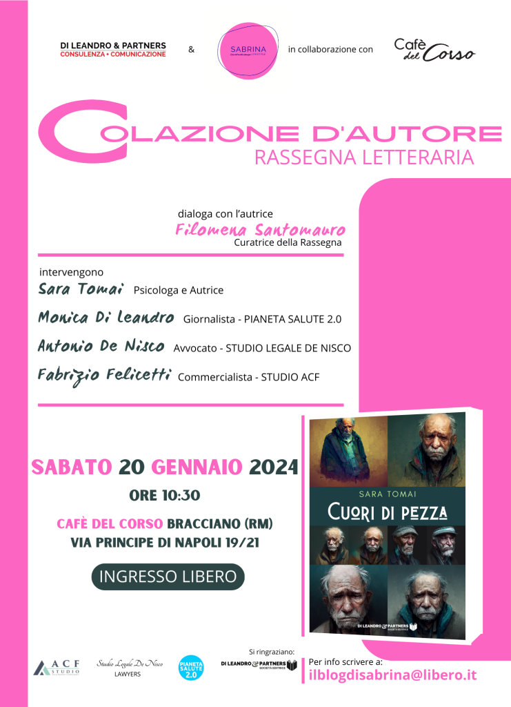 Sabato 20 Gennaio 2024, dalle ore 10:30, si inaugura la rassegna Colazione d’Autore presso il Cafè del Corso a Bracciano. Questo evento, organizzato dall’Ag. Letteraria Il Blog di Sabrina del Gruppo Editoriale Di Leandro & Partners, offre un’esperienza unica per avvicinarsi alla letteratura emergente in un’atmosfera conviviale e rilassante.
