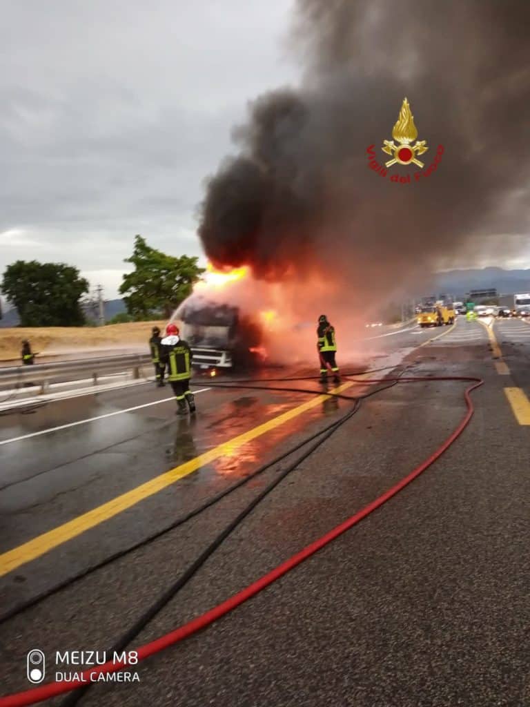 L’autista del mezzo era riuscito ad accostare sulla corsia d’emergenza e a scendere, senza riportare particolari conseguenze.