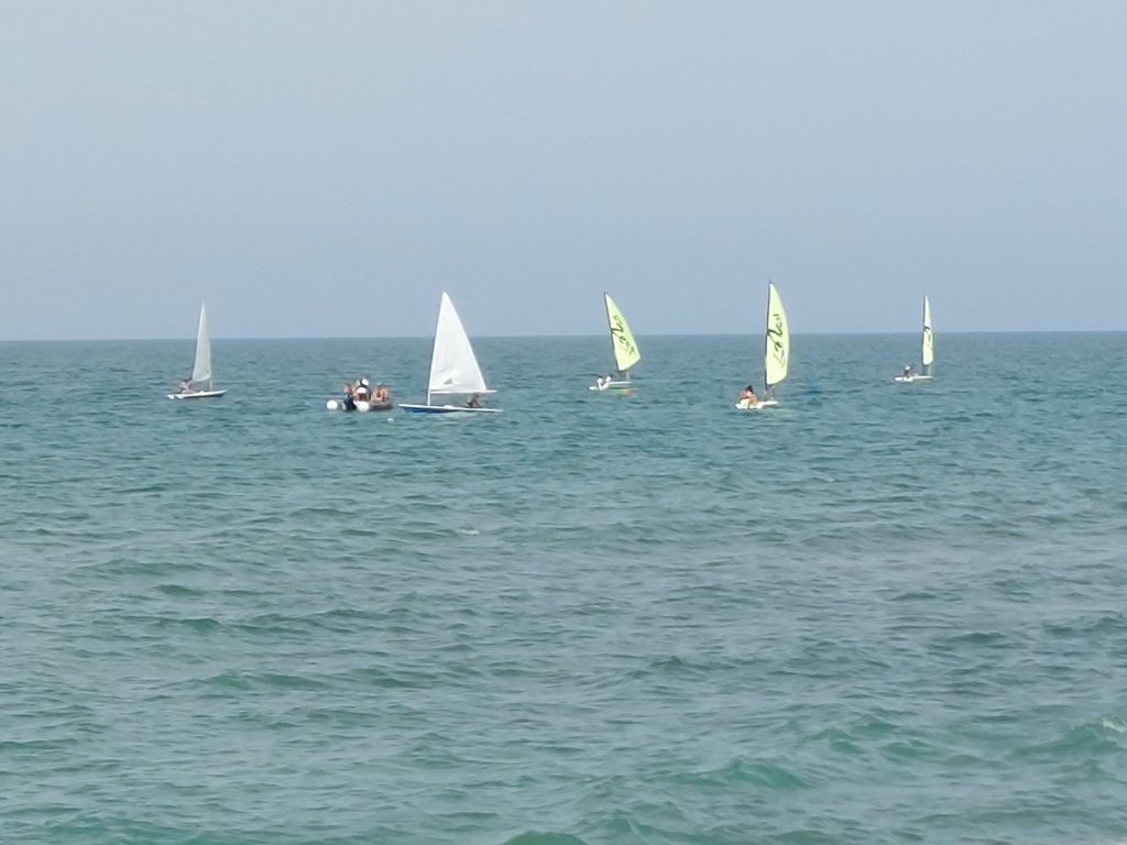 In mare cinque imbarcazioni per i primi 10 allievi 2024 ed un gommone per l’assistenza, con a bordo l’istruttore FIV Alberto Concutelli coadiuvato da un allievo istruttore.