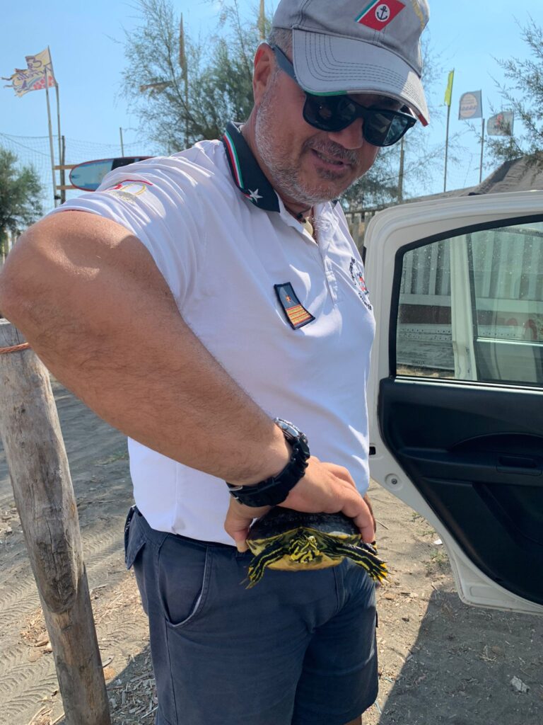 L’esemplare di Trachemys scripta è stata raccolta e reinserita nel suo habitat naturale
