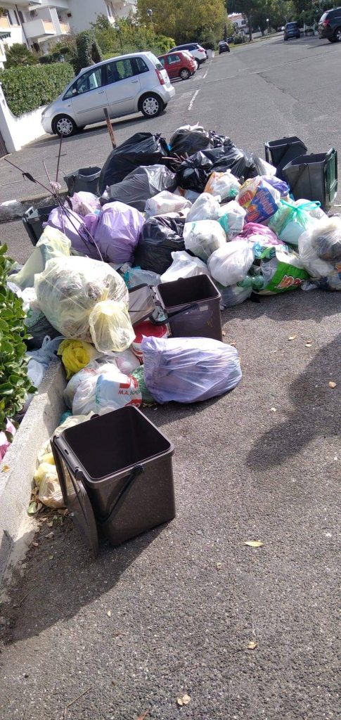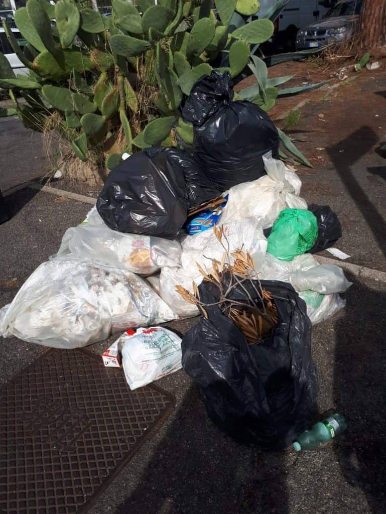 Materiale non riciclabile ritrovato ieri lungo alcune aree pubbliche, confezionato in buste accumulate in vari punti anziché usare l’apposito contenitore