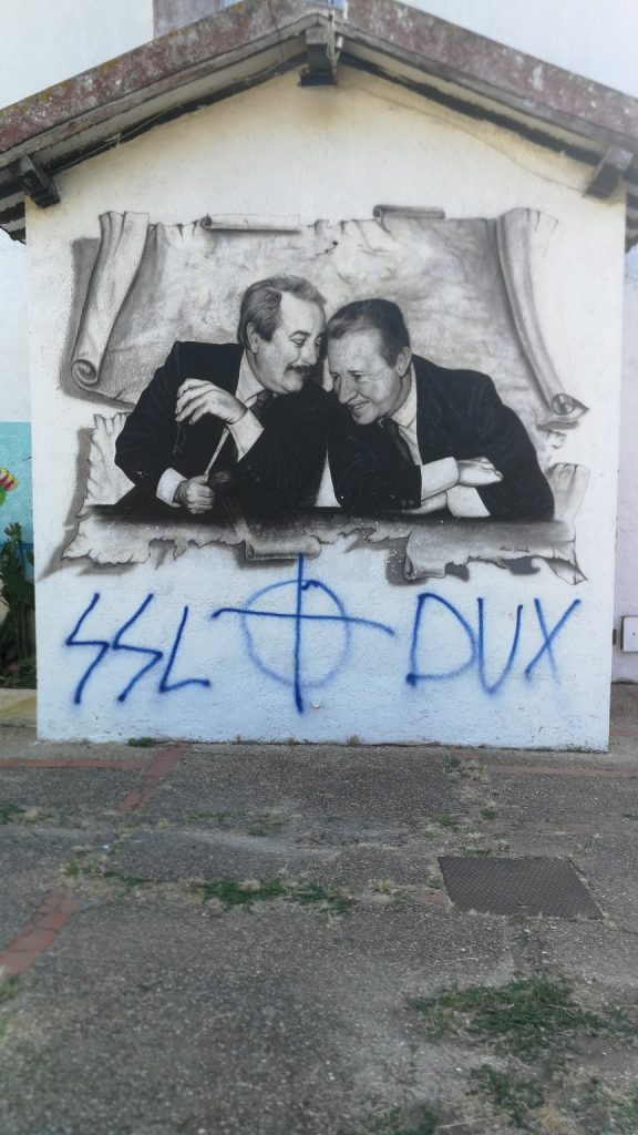 L’altro giorno un fatto gravissimo ci ha amareggiato e indignato ed ha indignato tante altre persone: è stato gravemente imbrattato il murales di Cerenova su Falcone e Borsellino, i due coraggiosi giudici uccisi, insieme ai loro uomini della scorta, dalla mafia.