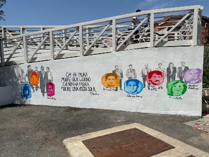 Ideato dall’ artista Stefania Paolucci, il Murales raffigurante i giudici e i volti degli uomini della scorta, completerà insieme all’ opera realizzata a Cerenova dall’ artista Alessio Gazzola un simbolo forte e potente della lotta contro la mafia. Il Murales terminato nel giorno 19 luglio, data della ricorrenza della strage di via d’Amelio e di cui era prevista l’inaugurazione, è stata rinviata per causa impegni istituzionali.