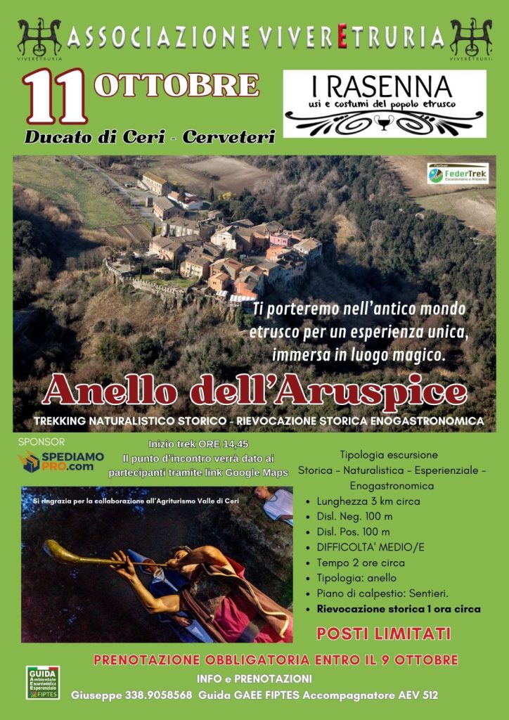 Le associazioni Irasenna e Vivere Etruria organizzano, per sabato 11 ottobre 2025, un trekking con rievocazione storica nella zona di Ceri. Gli organizzatori hanno scelto un percorso diverso e alternativo rispetto ai giri più battuti. Un invito a riscoprire un territorio “vasto e pieno di storia”, con l’obiettivo di far conoscere tutte le sue bellezze.