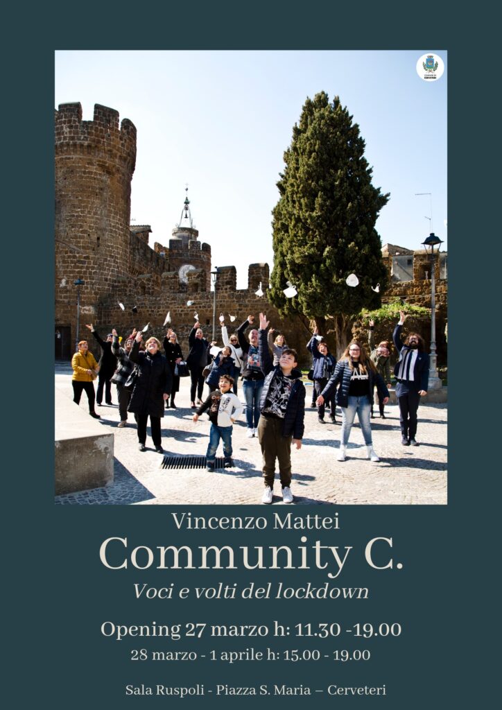 Il 27 marzo presso la Sala G. Ruspoli a Cerveteri si terrà COMMUNITY C._Voci e volti del lockdown di Vincenzo Mattei, a cura di Graziella Melania Geraci e con il patrocinio del Comune di Cerveteri e dell’Assessorato alle politiche culturali