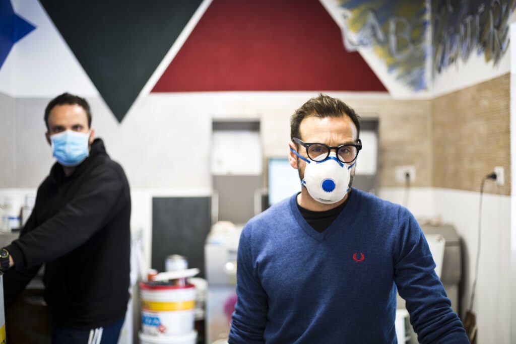 La mostra si apre infatti volutamente nel momento in cui è stato revocato l’obbligo delle mascherine all’aperto, ed è stato proprio il flash mob di parte della cittadinanza cerveterana, sindaco compreso, che Vincenzo Mattei ha ritratto: l’atto di lanciare in aria le mascherine diventa simbolo di fiducia nel domani e viene proposto quale immagine emblematica della mostra.