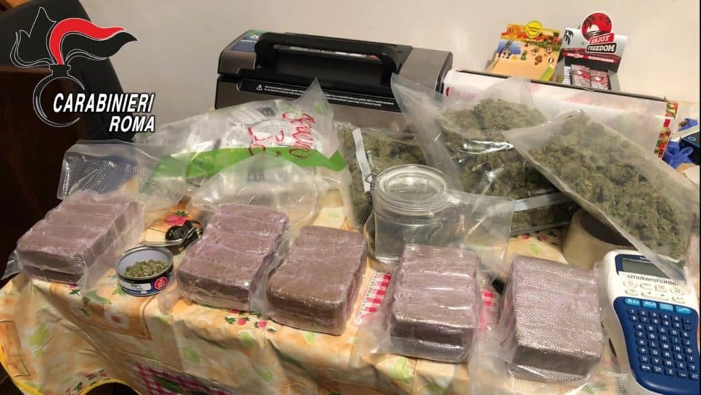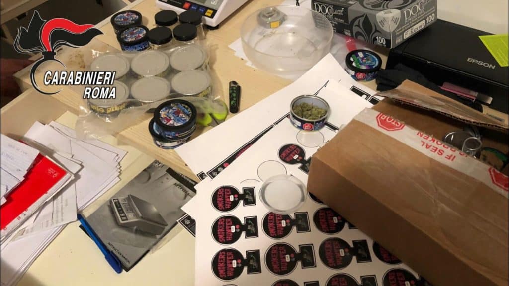 In casa è stato infatti rinvenuto un vero e proprio campionario della droga “e-commerce” con 6,2 kg di marijuana, 4,6 kg di hashish e 23 g di olio di hashish nonché il materiale per il confezionamento delle dosi e il materiale per il confezionamento ed etichettatura per la vendita on line dello stupefacente insieme a ricevute manoscritte relative alle varie transazioni e spedizioni che avvenivano in tutta Italia. Una volta pagato l’ordine attraverso un sistema di carte prepagate, lo stupefacente veniva confezionato, apponendo il proprio marchio e spedendolo all’acquirente tramite corrieri nazionali.