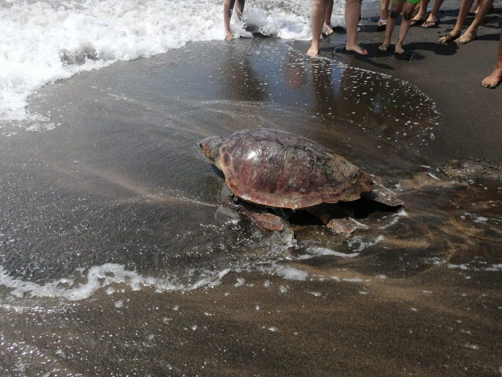 L’animale, impegnato nel compiere il deposito delle uova, indispettito dalla presenza dei curiosi ha immediatamente ripreso il mare. La Capitaneria: “In caso di avvistamenti del tipo non disturbare, restare lontani e contattare la Guardia Costiera”