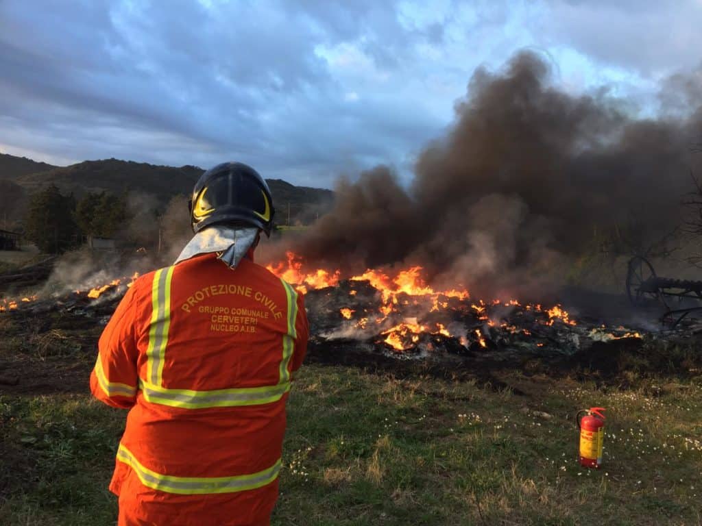 Cerveteri, copertoni e rifiuti dati alle fiamme. Intervento straordinario della Protezione Civile e della Polizia Locale nella notte