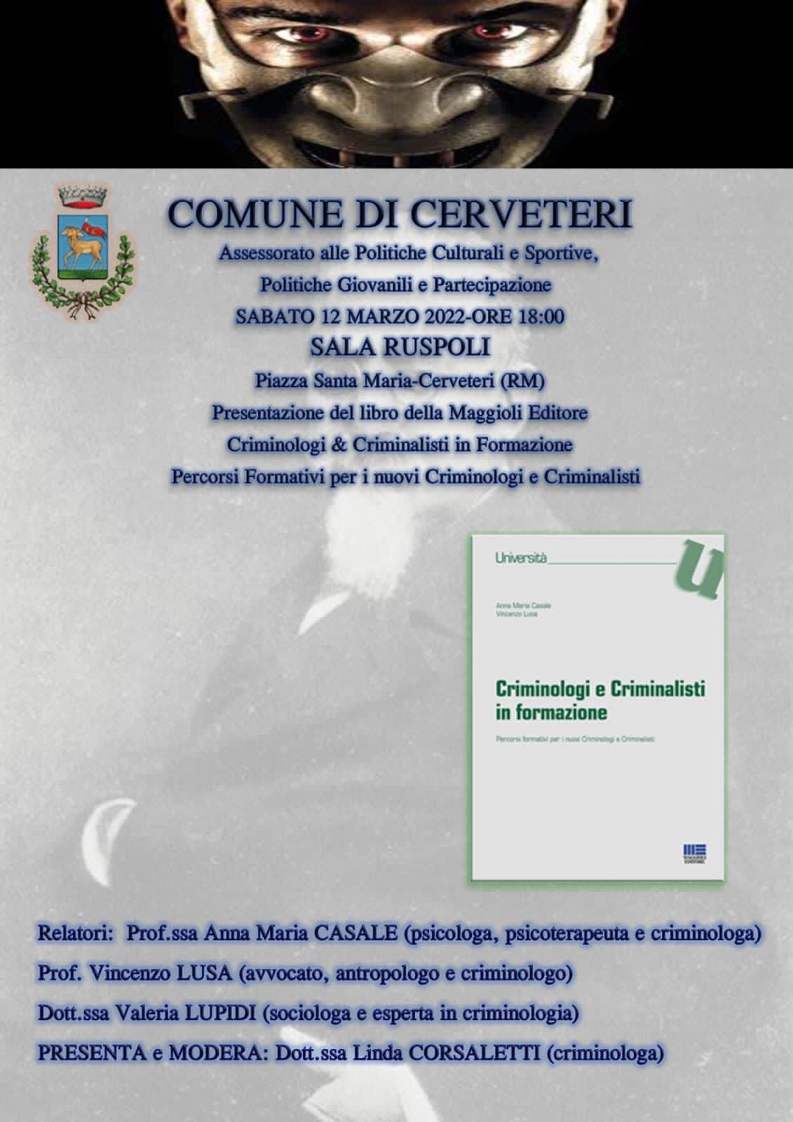 “Criminologi e Criminalisti in formazione” è il volume edito da Maggioli Editore che sarà presentato sabato 12 marzo alle ore 18:00 presso la Sala Ruspoli in Piazza Santa Maria.