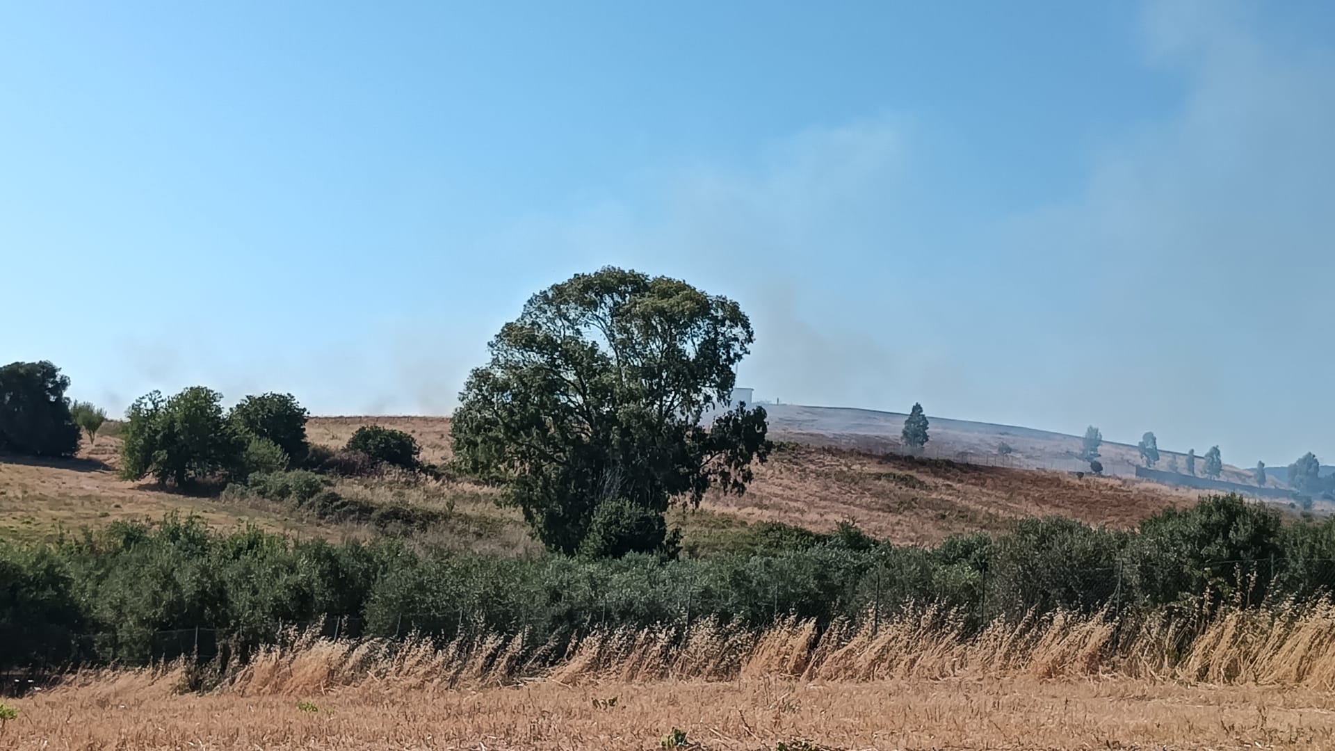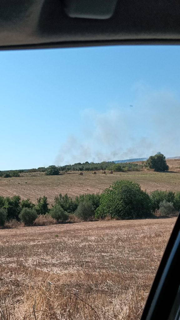 Grande incendio di grano e sterpaglie in via Furbara Sasso, all’altezza del civico 117: un’imponente colonna di fumo è visibile anche a grande distanza.