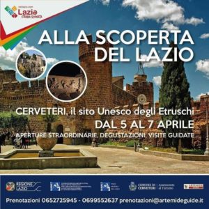Venerdì 5 aprile, dalle ore 15.00 alle 18.00, per esempio, sarà inaugurata con apertura straordinaria la mostra “Il patrimonio ritrovato a Cerveteri” a Case Grifoni, presso Piazza Santa Maria.
