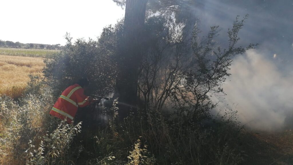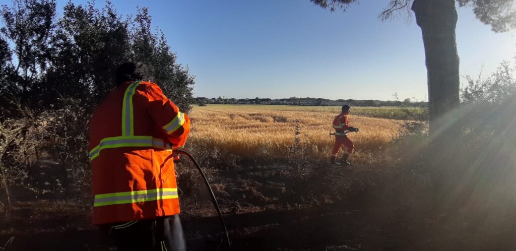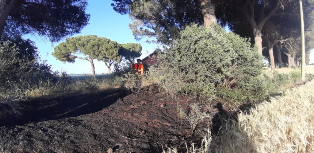 Le fiamme stavano rischiando di “attaccare” la pineta e i campi di grano. Duro lavoro ieri per i volontari della Protezione civile di Cerveteri intervenuti in via Zambra per un incendio boschivo.
