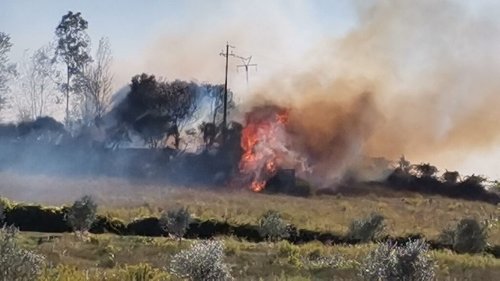 Cerveteri, incendio alimentato dal vento distrugge due ettari di sterpaglie –