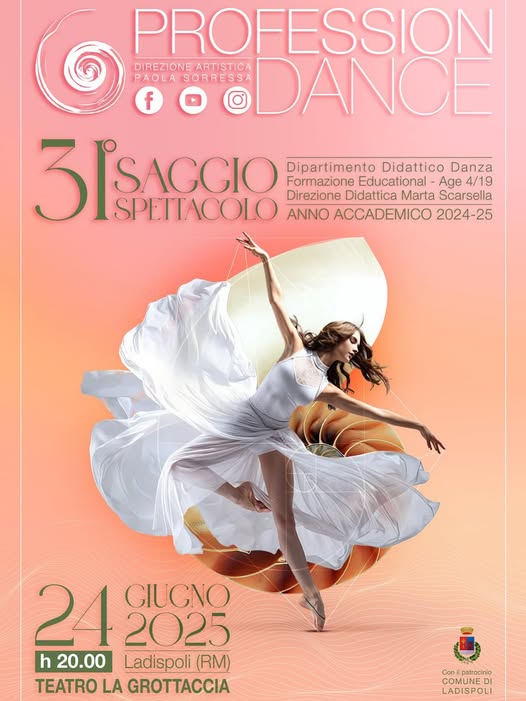 L’amministrazione comunale ricorda ai cittadini che questa sera, nella cornice dello spazio teatrale La Grottaccia, in via Rapallo, alle ore 20:00 avrà luogo il 31° Saggio Spettacolo della Scuola di Danza Profession Dance. La scuola di Danza Classica e Contemporanea che da tempo, sotto la Direzione Artistica di Paola Sorressa, promuove sul territorio l’arte della danza, includendo tutte le espressioni della danza e del movimento.