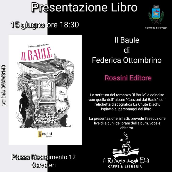 Il 15 giugno alle ore 18:30 il Caffè Libreria Il Rifugio degli Elfi ospiterà la presentazione del libro “Il Baule” di Federica Ottombrino, Rossini Editore. La scrittura del romanzo “Il Baule” è coincisa con quella dell’Album “Canzoni dal Baule” con l’etichetta discografica La Chute Dischi, ispirato ai personaggi del libro. La presentazione prevede l’esecuzione live di alcuni dei brani dell’album, voce e chitarra.