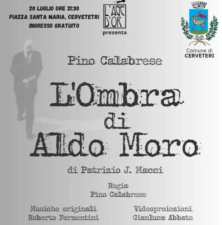 Questa sera, sabato 20 Luglio, alle ore 21:30 presso Piazza Santa Maria a Cerveteri andrà in scena lo spettacolo teatrale “L’Ombra di Aldo Moro”, scritto da Patrizio J. Macci e interpretato dall’attore Pino Calabrese.