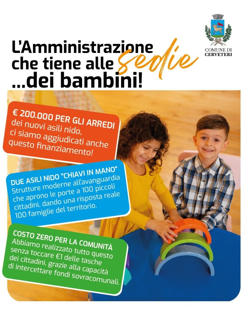 Cerveteri si aggiudica 200mila Euro per gli arredi dei due nuovi Asili Nido: cento posti a costo zero per le famiglie –