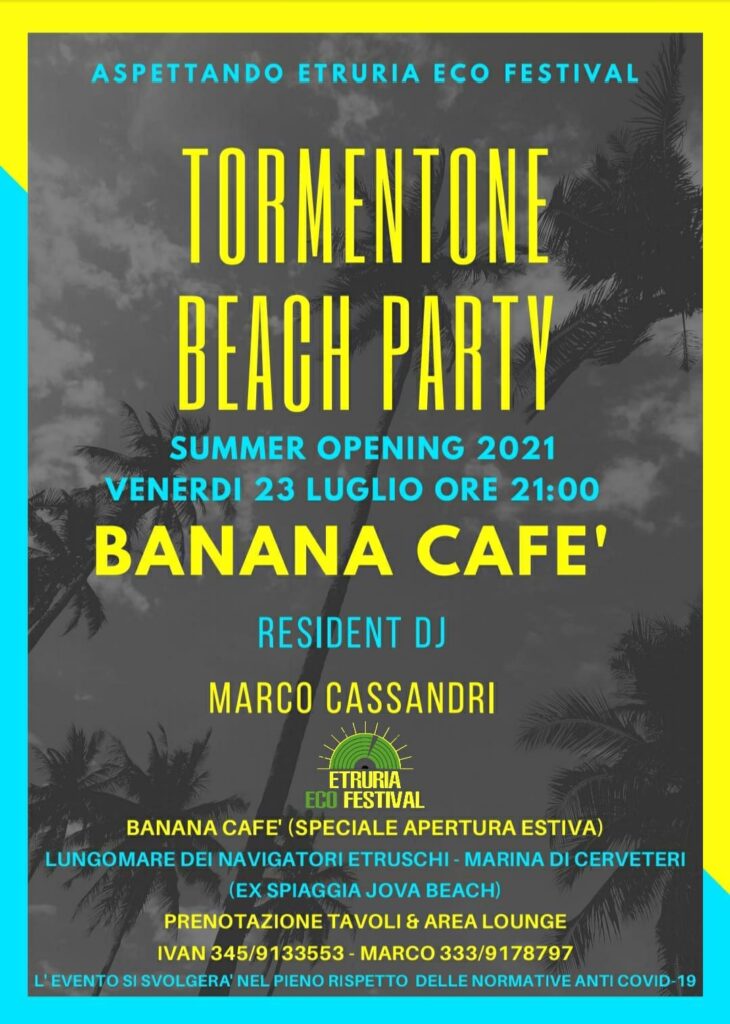 Venerdì 23 luglio apre il “Tormentone Beach Party”, un evento targato “Banana Café”, tra stand e la musica di DJ Marco Cassandri, che remixerà i grandi tormentoni del passato e del presente per trascorrere una serata da sogno a pochi passi dalla spiaggia.