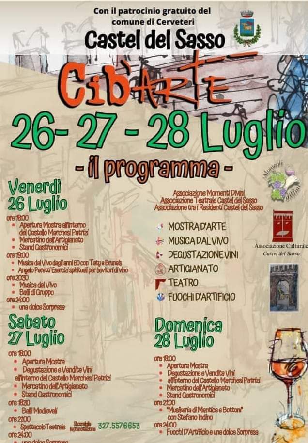 Cibarte rappresenta la ricerca dell’ eccellenza enogastronomica del territorio attraverso la valorizzazione dei prodotti locali e nella congiunzione storica tra gli stessi e l’arte. territorio quello ceretano in generale e sassaiolo in particolare, che già dall’ antichità, con particolare riferimento al periodo di dominazione etrusca, ha visto l’arte figurativa, soprattutto quella vasaria connessa con la valorizzazione del cibo e del vino in uno stretto connubio tra metafisica e prodotti della terra. In sintesi cibarte rappresenta il tentativo di riportare in auge tradizioni e culture legate al processo di sviluppo storico del territorio e allo stretto afflato tra cibo e socialità in uno stretto abbraccio che lega l’ispirazione artistica, anche quella dei racconti teatrali degli anfratti dell’ essere, all’ ancestrale e viscerale legame con la sua terra di origine e alle successive e migliorative contaminazioni , con la manifestazione tangibile che si estrinseca attraverso gli edibili che ne hanno segnato in maniera indissolubile storia, tradizioni e costumi.