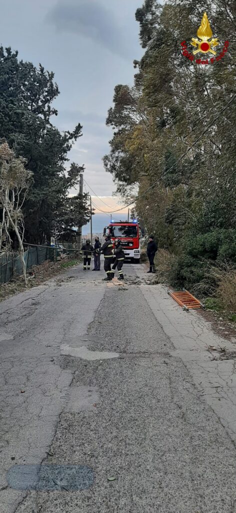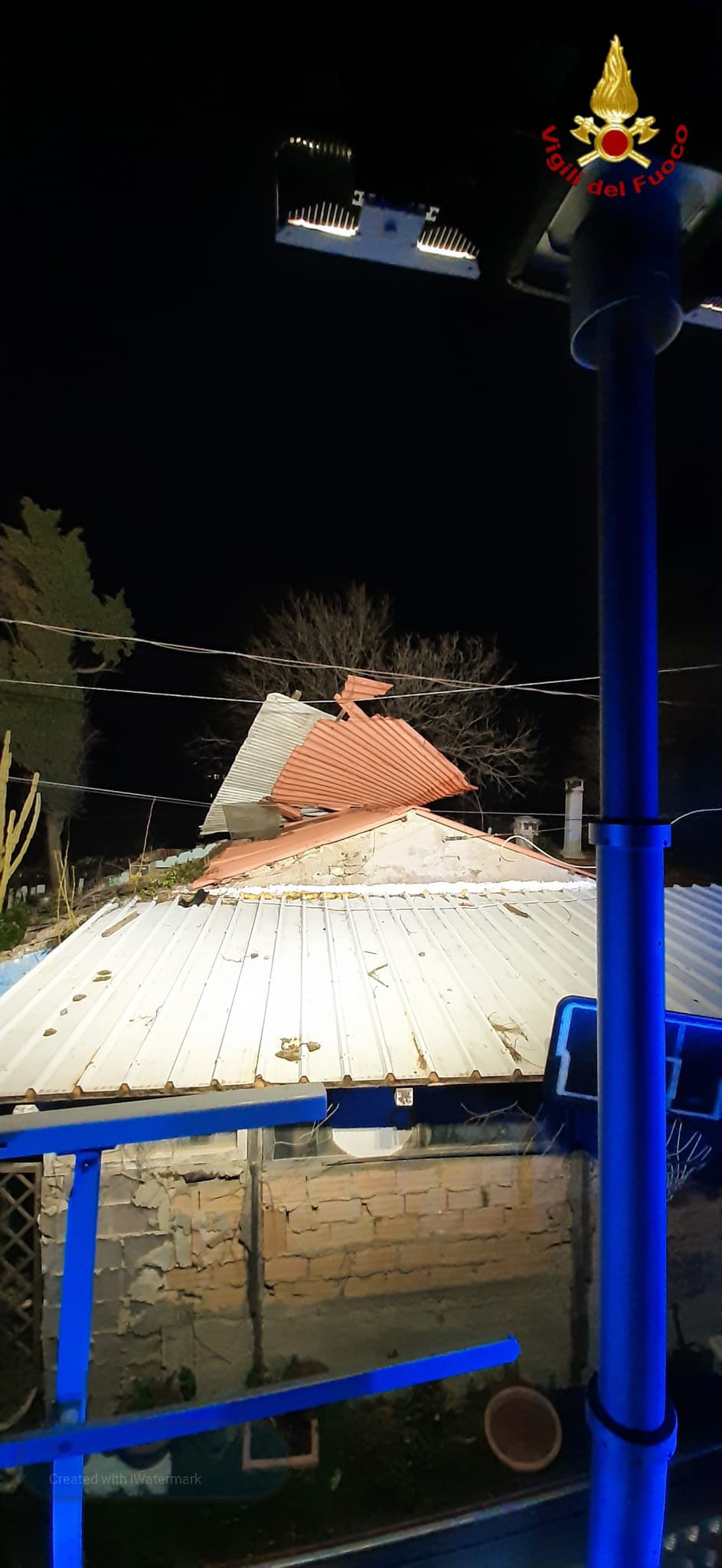 Le forti raffiche di vento hanno costretto i Vigili del Fuoco a dividersi su più zone della città, supportati anche da una squadra proveniente da Roma